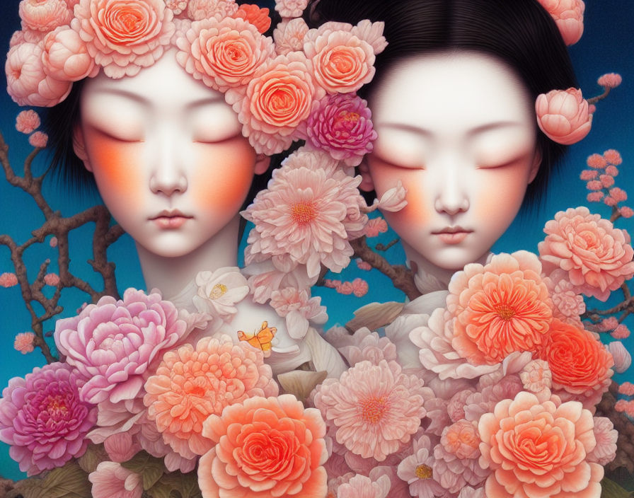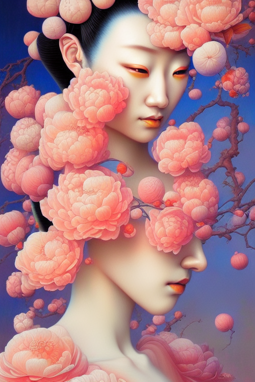 Pink and purple marigolds hovering around cyber empresses, the artist is a Pisces who plays with earth, air and water to create visual spooky poetry. She artfully arranges in terrarium-like forest, flowers, fruits and leaves that seem to be levitating. Supernatural twin queens that float like butterflies above crystal clear waters are the essence of her work. An invitation into magical botanical gardens where biology exists inside and outside. Deeply inspired by Hannah Yata, Soey Milk and Miho Hirano, her passion for nature, angels and Japanese culture shine in her work.